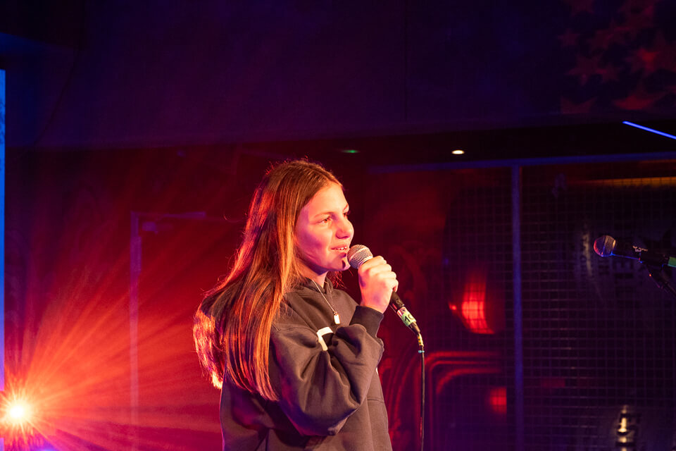 La tarde comenzó con las primeras actuaciones en el escenario, donde más de 40 alumnos mostraron lo aprendido durante este primer tramo del curso. Para muchos, era la primera vez que se enfrentaban al público, y lo hicieron con una entrega y valentía que nos emocionó a todos.