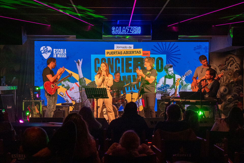 Después, abrimos las puertas de la Escuela para una visita guiada a las instalaciones, donde familiares, amistades y nuevos interesados pudieron conocer de cerca el proyecto educativo de Es Gremi. La visita fue conducida por Isis Montero (Jefa de estudios) y Jesica Martín (Coordinadora de la Escuela), quienes resolvieron dudas y compartieron las novedades de este curso, entre ellas, el nuevo curso de Iniciación musical para niños de 3 a 6 años o la posibilidad de alquilar desde febrero nuestras aulas para ensayar, tanto individualmente como en grupo.